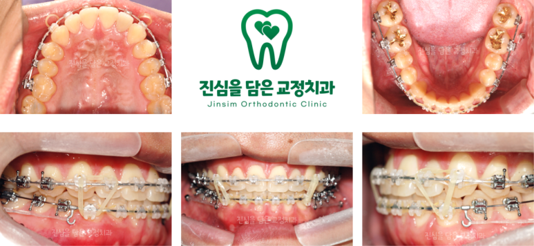 실제로 환자분의 얼굴 모양, 교합, 위와 아래턱의 관계 등을 종합적으로 확인한 결과, 위 악궁의 확장이 필요했고, 수술 없는 치료만으로도 앞니가 바로 물리게 하고 치열을 가지런히 할 수 있다는 결론을 내렸습니다. 따라서 위 악궁의 확장장치, 스크류, 브라켓 등 다양한 방법을 동원해서 치료를 진행했습니다.