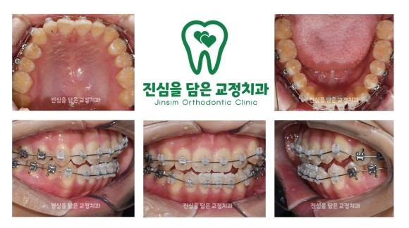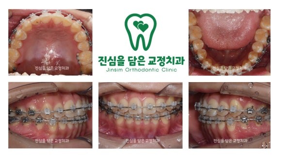 1) 위 아래 교정장치를 부착하여 삐뚤어진 위아래 치아 배열을 개선하였습니다.